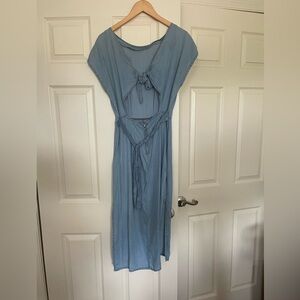 Blue Cotton Dress with Open Back