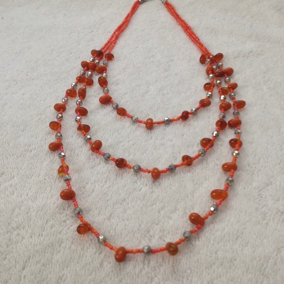 Thank you so much for this perfect necklace. It matches a navy and orange vest I have. Have a great day!!
