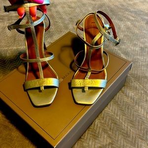 Beautiful lime, green, metallic sandal heels