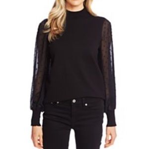 CeCe Black Sweater Polka Dot Shear sleeves elegant cotton size small holiday
