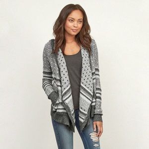 Abercrombie & Fitch Gray and White Hooded Cardigan Sweater