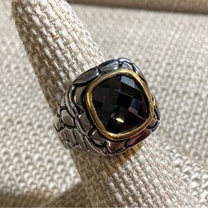 Vintage Damascene Bird and Flowers Black and Gold Tone Necklace
