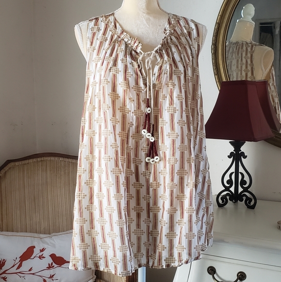 Anthropologie Tops - Anthropologie Kopal Sleeveless Flowy Top Tan/Red/Cream
