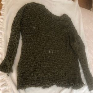 LF millau olive green distressed knit sweater