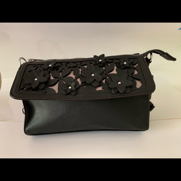Liz Claiborne Handbags - LC Liza Claiborne Black Liza Floral on Gold Tone Background Crossbody Purse