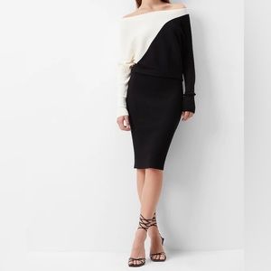 Express Color Block Asymmetrical Off the Shoulder Midi Sweater Dress