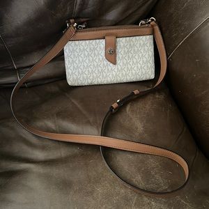 MK Double Zip Phone Case Crossbody Ivory and Tan