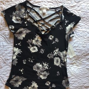 Black floral tee