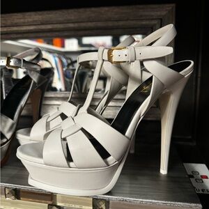 Yves Saint Laurent YSL Tribute Metallic Silver Heels