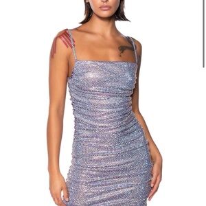 AKIRA Label Better Than Ever Ruched Rhinestone Mini Dress