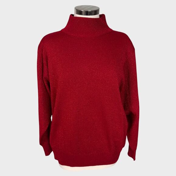 The most beautiful red Lurex Sweater.It will be fun to dress up or wear with jeans.Arrived in perfect condition as described Was packed well and shipped quickly.A+ Seller