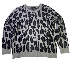 T Tahari women’s Sweater Black & Gray Size Large Leopard Print Pullover