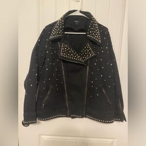 Nasty Gal Premium Embellished Studded Denim Moto Jacket