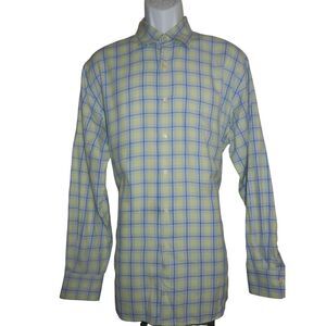 UnTuckit Shirt Men Extra Large XL Nylon Stretch Long Sleeve Button Up Blue Check