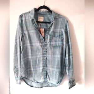 Hollister Small Mens Flannel Button Down Shirt Long Sleeve Buffalo Plaid Red