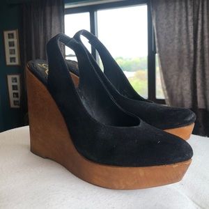 Rowen Black Suede Leather Platform Wedge EUC