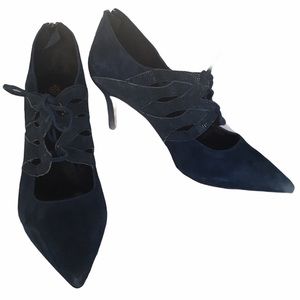 Isola Palazzo Blue Suede Snake Print Lace-up Pointed Toe Pump