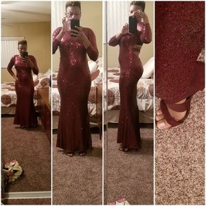 Navy blue sequined floor length dress