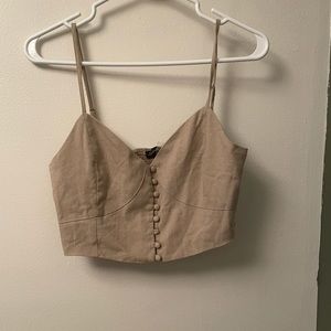 a.n.a Beige Cropped V-Neck Chunky Button Cardigan