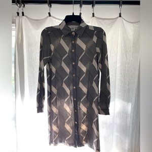 Diane Von Furstenberg Silk Knit Shirt Dress black/cream geo print