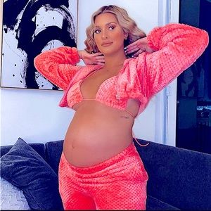 NWOT H&M Divided Red Faux Fur Long Teddy Jacket Coat sz XS fuzzy soft overcoat