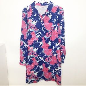 Lilly Pulitzer Pink Blue Floral Shirt Dress 8