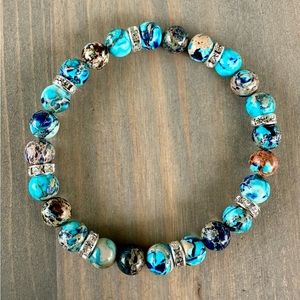 Imperal Jasper and Czech rhinestone bracelet - 8 inches
