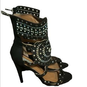 Strappy black and silver stiletto Cape Robbin sandals