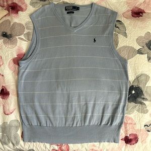Polo Ralph Lauren 100% Cotton V Neck Sleeveless Striped Sweater Vest Baby Blue