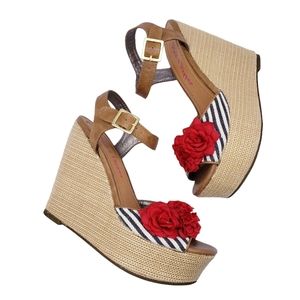 🆑 EUC! Pink & Pepper Platform Wedge Heel Ankle Strap Sandals Women's Size 7