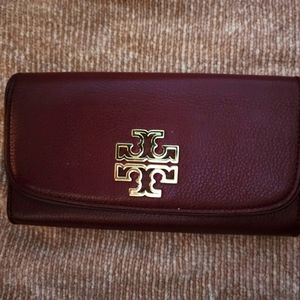 Tory Burch Britten Envelope Burgundy Pebbled Leather Wallet