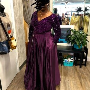 Beautifully fitting A-line dress in eggplant color.