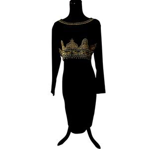 Black and Gold Winter Dress / Carole Little Petite Small