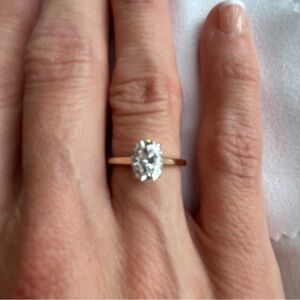 10k yellow gold band. 4 prong, 1.5ct oval moissanite. Size 5.5