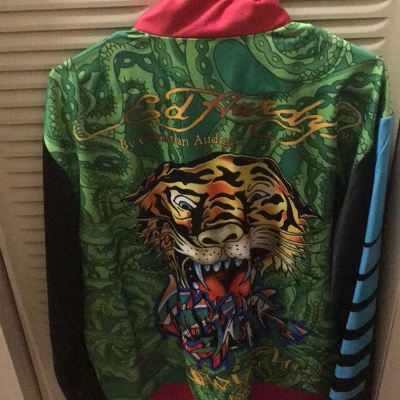 Perfection!! Just as described. I purchased the Ed Hardy track jacket for a gift and when received it was in Excellent condition. Seller communication was Amazing. Prompt Shipping. A pleasure to deal with. A++