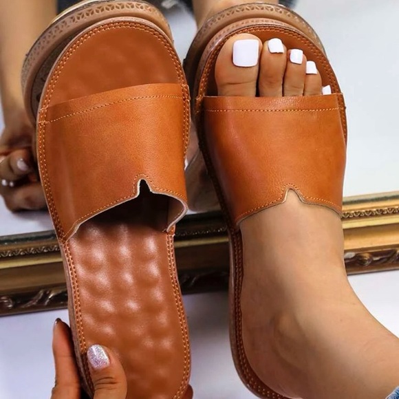 Beautiful brown open toe sandals. Such a simple but classy design. I love the air cushioned soles, these are super comfortable. They are in excellent condition and as described. I appreciate the care you put into wrapping and packaging these treasures as well as the fast delivery. Thank you for a great transaction. Take care, stay safe and be well. All the best to you.