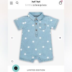 NWT Little Sleepies Play Denim Star Romper bamboo size 0-3 months limited