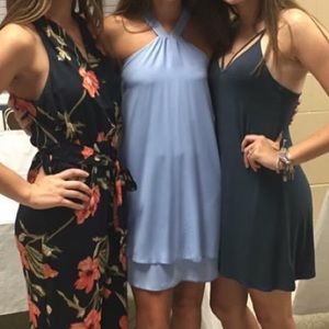 Blue high neck layered dress
