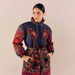 Farm Rio midi patchwork reversible puffer coat M
