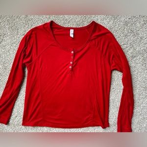 Women’s One World Red 3/4 Sleeve Scoop Neck Asymmetrical Hem Top