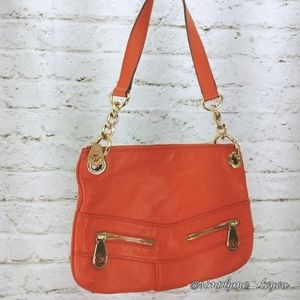 Adrienne Vittadini Womens Tan Leather Flap Snap Classic Shoulder Handbag Purse