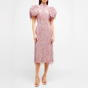 Rotate Birger Christensen Icons Fringe Puff Sleeve Dress *NWT*