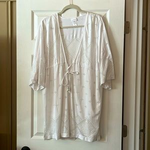 White swim cover-up. Above the knee length, very flattering. No stains or snags.