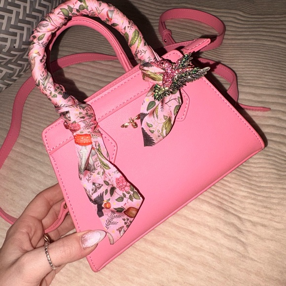 Such a cute handbag! Love the color, the twilly, the pin. So so so cute! Will definitely wear this summer. Love that the lining of the bag matches the twilly, too! The packaging of the bag as IMMACULATE! Wow! Bubble wrap, tissue paper, even more bubble wrap! The crossbody strap was packaged separately from the bag to avoid any damage. Just so thoughtful. Thank you 🩷🩷🩷