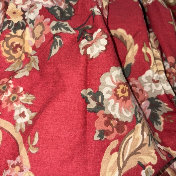 Just as described and like brand new! Beautiful colors ! I did find the goodwill tag in one of the shams. Someone’s find is someone else’s treasure! Love that!