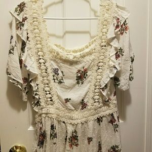 Anthropologie Eri + Ali Floral Top Lace Detail