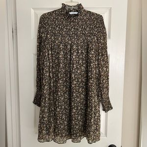Lulus Black Floral Long Sleeve Mini Dress with Ruffles Size S