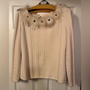 ESCADA Cashmere Wool Foxtail Poof Cream Boat Neck Sweater Women size 14 / 44 EU