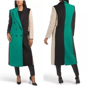 New STUNNING BCBGMaxazria Blue and Black Colorblock Formal Dress sz M