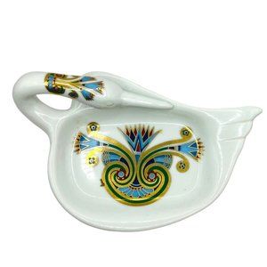 Homer Laughlin Blue Bird China Pendant, Silver-Blend Metalwork Crystal Necklace